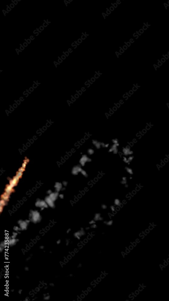 The watermark will not be included on Wall mural.: Vertical meteor with smoke trail bouncing around 4k loop features an erratic flaming meteor with a s