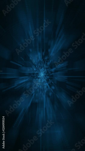 Wall mural vertical tech tunnel fast travel blue green 4k loop features golden disk and circle shapes raining d