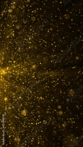 The watermark will not be included on Wall mural.: Vertical video - abstract background animation with glittering shiny gold particles and shimmering l