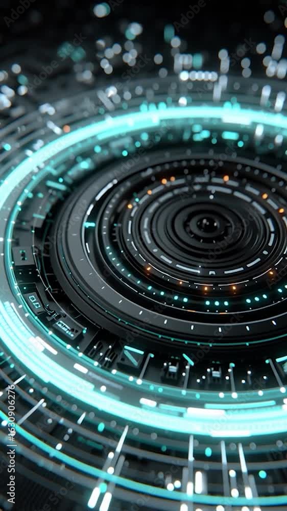 Wall mural vertical video abstract digital circuit board with glowing energy core. perfect for projects related