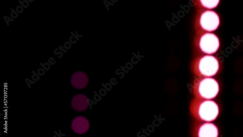 Wall mural : Vertically falling magenta blur light dots - magenta bokeh with reflexes fall down on a black backgro