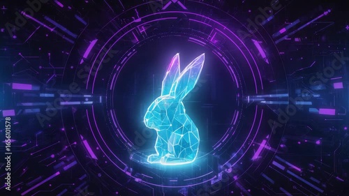 Wall mural vibrant, low-poly rabbit glows against a backdrop of intricate technological patterns and circular h