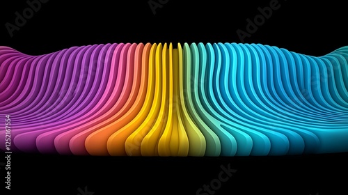 The watermark will not be included on Wall mural.: Vibrant, wavy lines in gradient colors create a dynamic visual effect against a dark background - ret