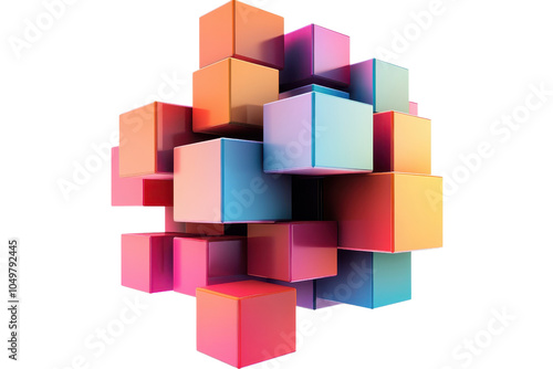 The watermark will not be included on Wall mural.: Vibrant 3d geometric structure of colorful cubes, displaying modern abstract design concepts in vivi