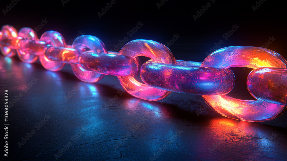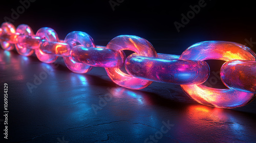 The watermark will not be included on Wall mural.: Vibrant 3d neon holographic chain glows with colorful lights, showcasing futuristic design - illumina
