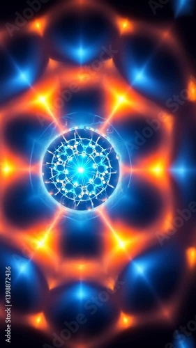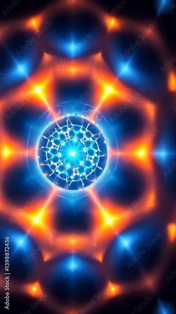 Wall mural vibrant abstract background featuring a circular element surrounded by geometrical shapes with radia - Wall murals Wall mural vibrant abstract background featuring a circular element surrounded by geometrical shapes with radia - Wall murals