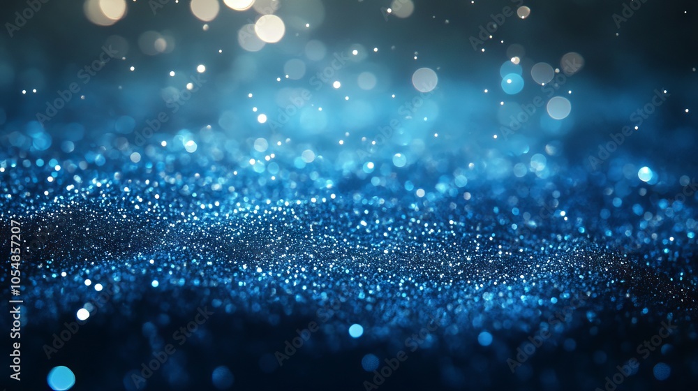 Wall mural : Vibrant abstract blue glitter background with soft out-of-focus effect and 3d rendered texture for c