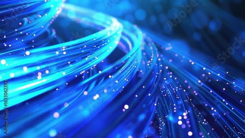 Wall mural : Vibrant abstract blue light motion with glowing particles and flowing lines in a dynamic background