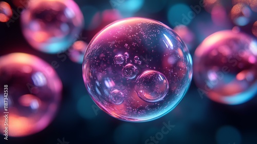 Wall mural : Vibrant abstract bubble art with neon colors and bokeh effect