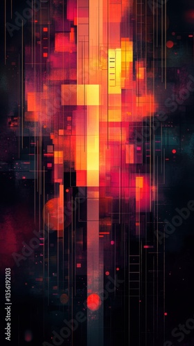 Wall mural : Vibrant abstract composition with brilliant hues and geometric patterns in bold vertical arrangement