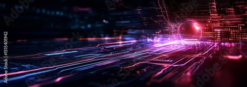 Wall mural : Vibrant abstract design of interconnected lines and dots on a dark digital background