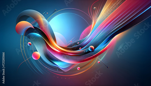 The watermark will not be included on Wall mural.: Vibrant abstract digital art with fluid waves and glowing spheres on gradient background - ai generat