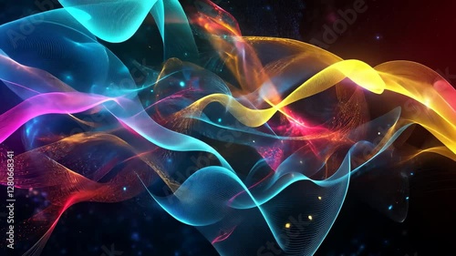 The watermark will not be included on Wall mural.: Vibrant abstract digital art with glowing lines and particles creating a mesmerizing visual experien
