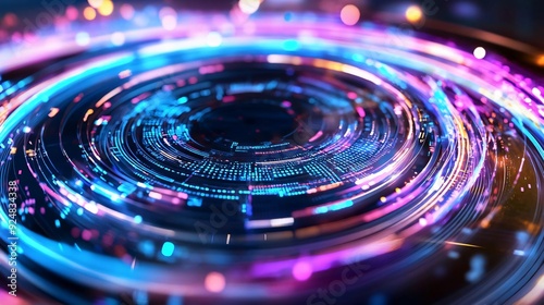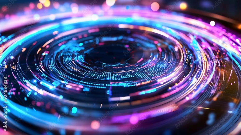 Wall mural : Vibrant abstract digital background featuring colorful light trails and circular patterns, ideal for