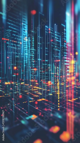 Wall mural : Vibrant abstract digital background representing data flow with neon lights and lines