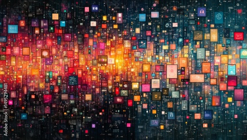 Wall mural : Vibrant abstract digital data visualization with colorful squares and rectangles