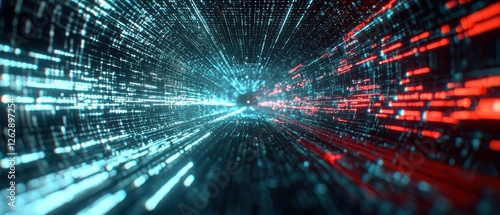 The watermark will not be included on Wall mural.: Vibrant abstract digital tunnel with luminous lines representing data and technology advancement in