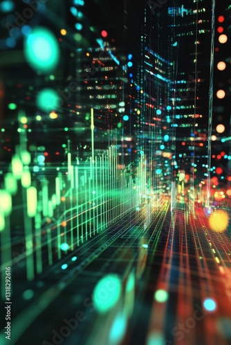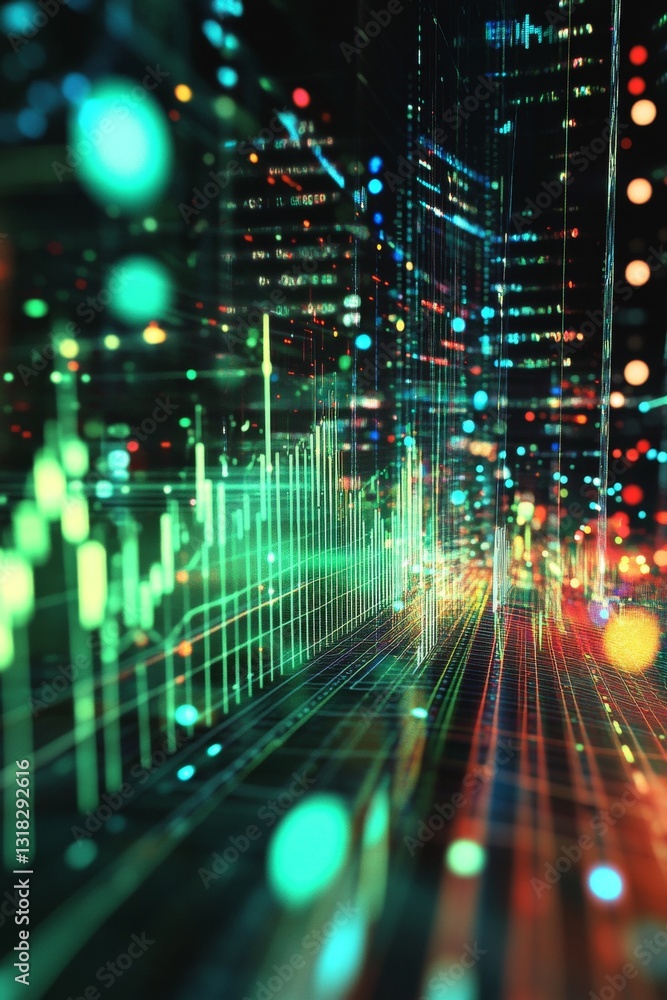 Wall mural : Vibrant abstract digital visualization of financial data with bright colors and geometric patterns
