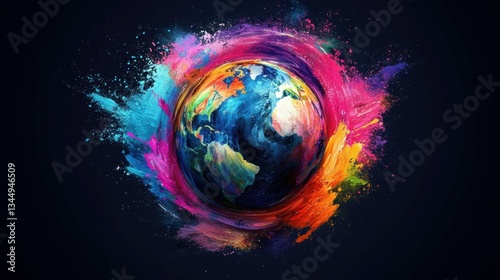 Wall mural vibrant abstract globe in dynamic brush strokes and splashes on black background