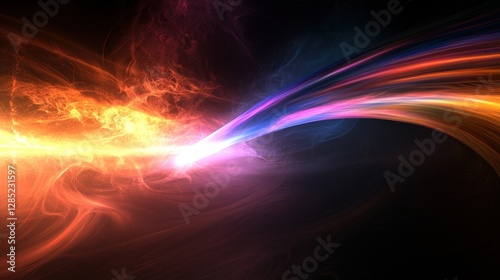 The watermark will not be included on Wall mural.: Vibrant abstract light trails weaving through a dark background, creating a dynamic visual effect
