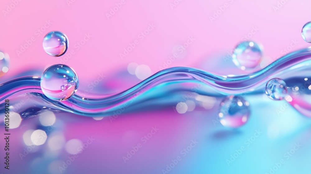 The watermark will not be included on Wall mural.: Vibrant abstract liquid waves and spheres, immersive 3d rendering featuring dynamic colors and fluid