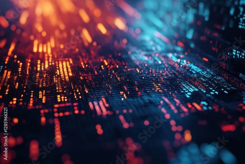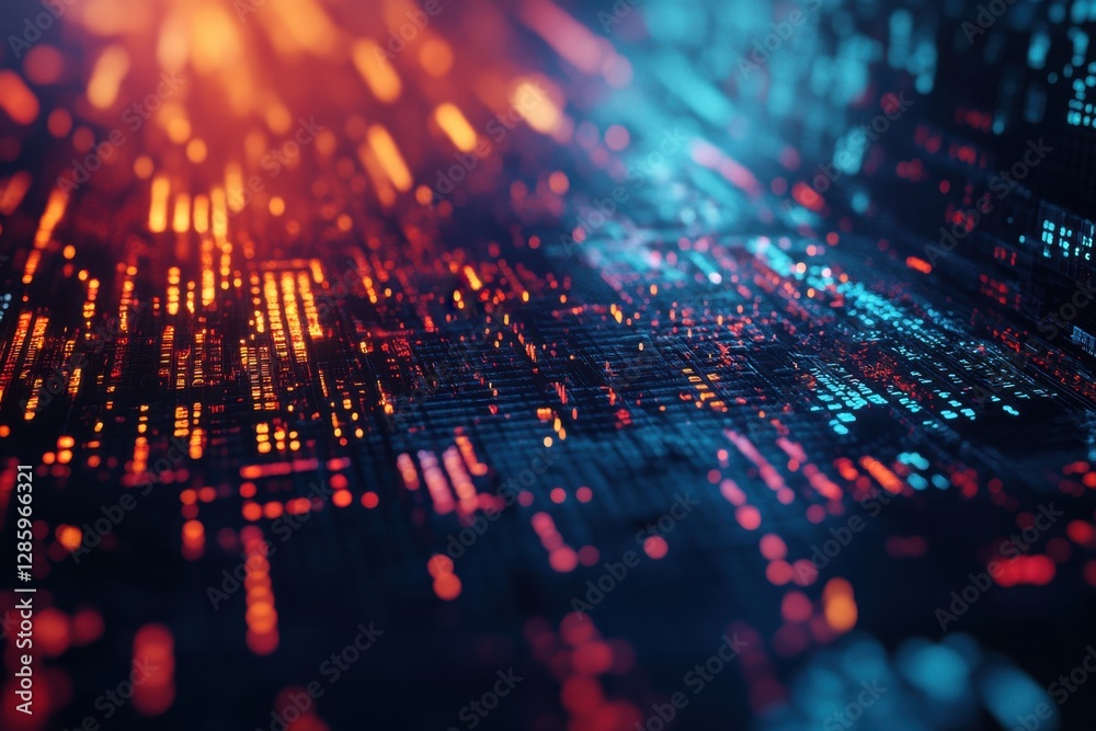 Wall mural : Vibrant abstract representation of digital data flowing through a futuristic landscape - generative a
