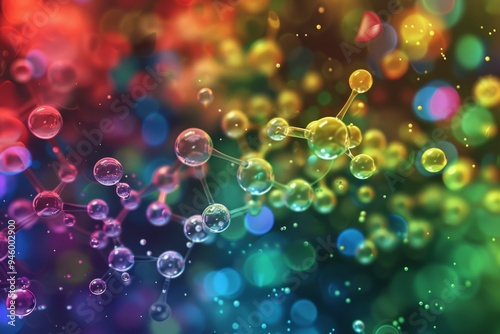 Wall mural vibrant abstract representation of nutrient molecular composition with colorful bokeh background - Wall murals Wall mural vibrant abstract representation of nutrient molecular composition with colorful bokeh background - Wall murals
