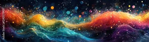 The watermark will not be included on Wall mural.: Vibrant abstract wave of colors and light with dynamic motion and energy in a cosmic space setting