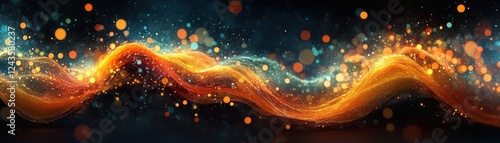 Wall mural : Vibrant abstract wave of light and colorful particles on dark background for dynamic and energetic d