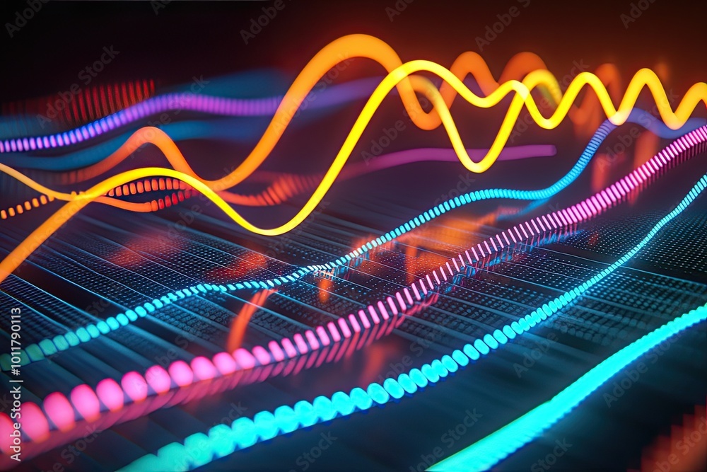 The watermark will not be included on Wall mural.: Vibrant abstract wave patterns in dynamic colors, creating a modern and energetic visual ideal for d