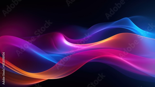 Wall mural : Vibrant abstract waves of colorful light against a dark background, creating a dynamic and flowing v