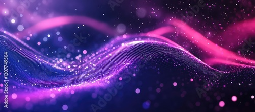 Wall mural : Vibrant abstract waves of purple and pink light creating a dynamic flow with sparkling particles aga