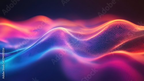 The watermark will not be included on Wall mural.: Vibrant abstract waves with colorful pulsating patterns and lights