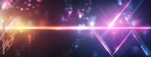Wall mural : Vibrant abstraction with neon glowing arrows and light rays creating dynamic energy on a dark purple