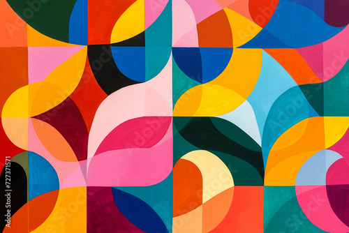 Wall mural vibrant and colorful geometric pattern with overlapping shapes and bold colors