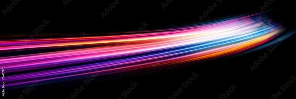 The watermark will not be included on Wall mural.: Vibrant and dynamic light trails create a mesmerizing effect against a sleek black background - perfe