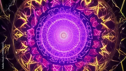 Wall mural : Vibrant and evershifting patterns of arcane glyphs guide the viewer through a veil of magic and myst