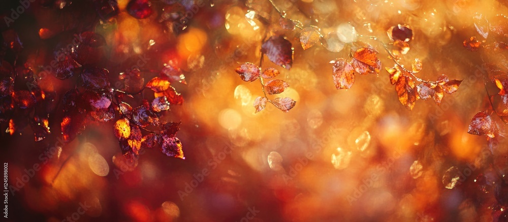 The watermark will not be included on Wall mural.: Vibrant autumn leaves illuminated by soft bokeh creating a warm and enchanting seasonal atmosphere f