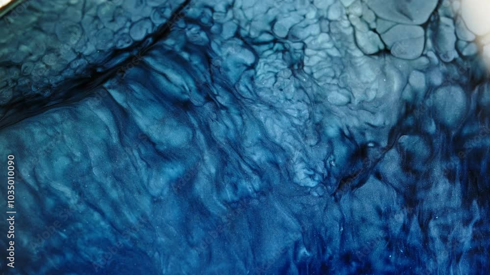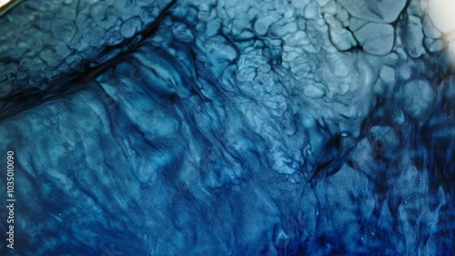 The watermark will not be included on Wall mural.: Vibrant blue liquid patterns swirl and mix in intricate macro detail, creating a dynamic abstract ef