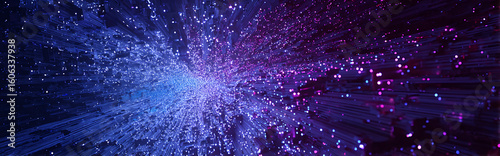 Wall mural : Vibrant blue-purple gradient particle flows forming an endless tunnel with glowing circuit patterns,