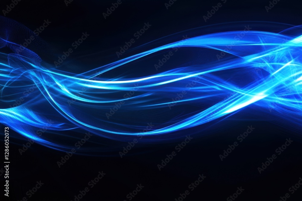 The watermark will not be included on Wall mural.: Vibrant blue waves dance across a dark canvas with an ethereal glow creating a mesmerizing visual ex