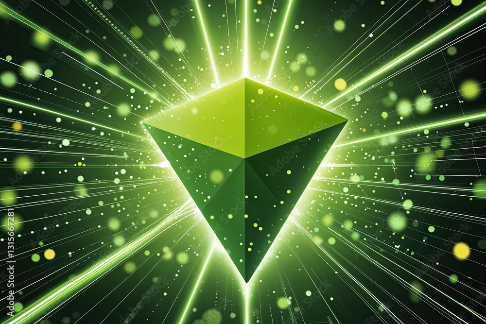 Wall mural : Vibrant chartreuse tetrahedron background with intrusive dots and lines for technology and digital s