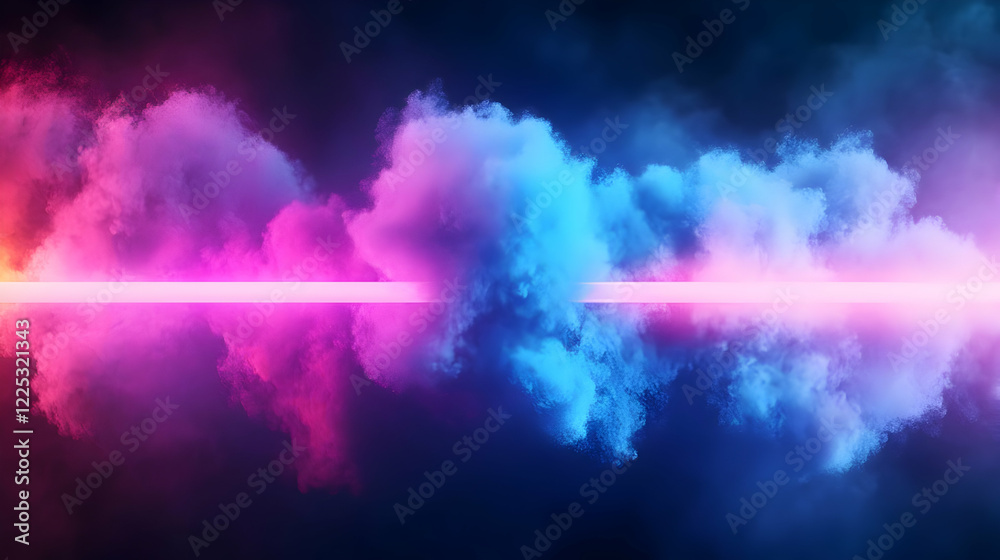 The watermark will not be included on Wall mural.: Vibrant colored smoke clouds with luminous beams of light, creating a dynamic and futuristic atmosph