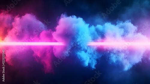 Wall mural : Vibrant colored smoke clouds with luminous beams of light, creating a dynamic and futuristic atmosph