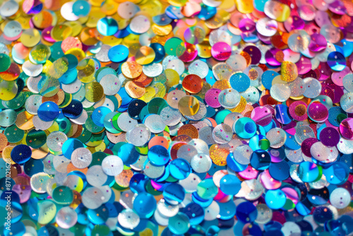 Wall mural vibrant colorful background with sparkling sequins in various colors. festive texture