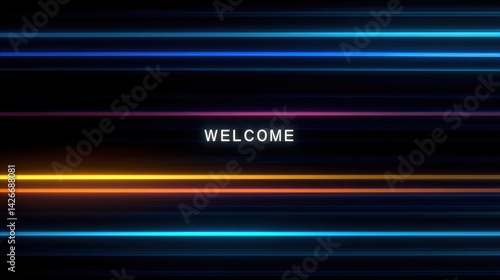The watermark will not be included on Wall mural.: Vibrant colorful light streaks across a blurred horizon creating dynamic energy and visual interest