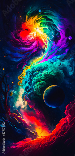 The watermark will not be included on Wall mural.: Vibrant colourful abstract galaxy universe portrait wallpaper - generative ai