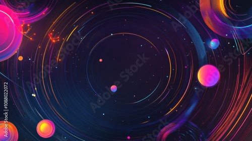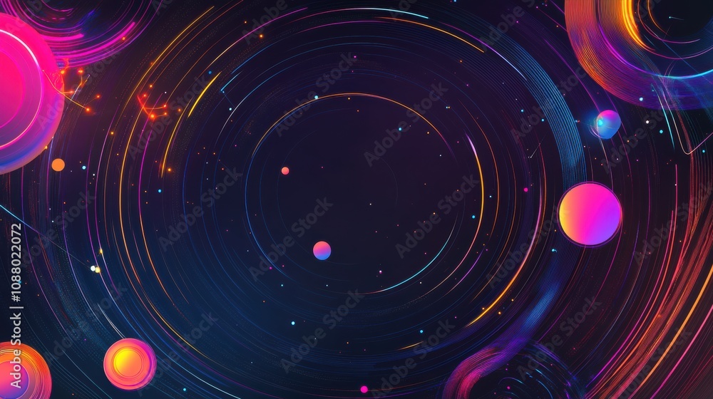 Wall mural : Vibrant cosmic background with colorful circles and swirling light trails creating an abstract inter