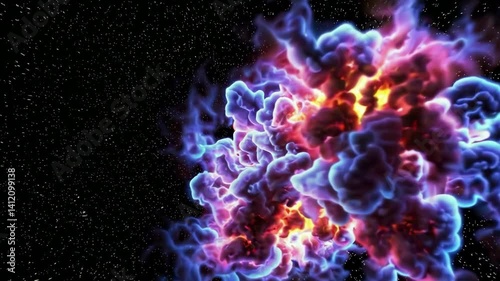 The watermark will not be included on Wall mural.: Vibrant cosmic nebula exploding in dazzling colors against a starry sky