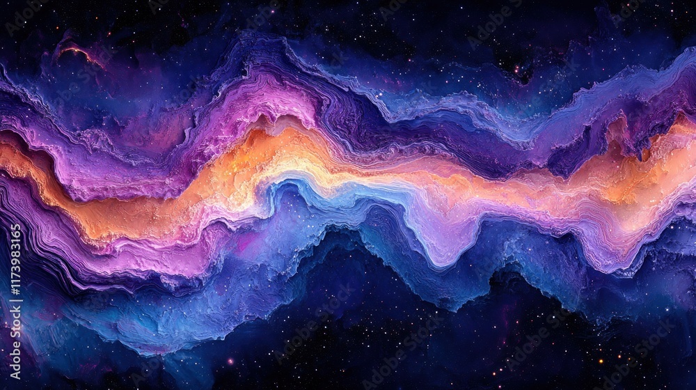 The watermark will not be included on Wall mural.: Vibrant cosmic nebula with swirling colors and starlight depth in abstract expressionism style